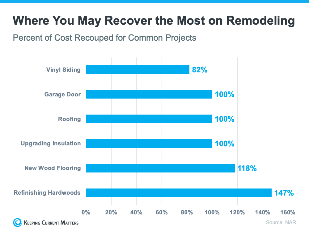 In addition to making sure your house makes a good first impression, you’ll also want to consider the return on your investment (ROI) for any renovations. According to the 2022 Remodeling Impact Report from the National Association of Realtors (NAR), here are the projects that could net you the best return when you sell your house (see visual below):
