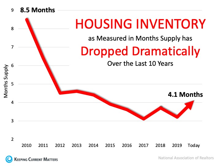 Making our way through the month of June and entering the second half of the year, we face an undersupply of homes on the market. Keep in mind, this undersupply is going to vary by location and by price point. According to the National Association of Realtors (NAR), across the country, we currently have a 4.1 months supply of homes on the market. Historically, 6 months of supply is considered a balanced market. Anything over 6 months is a buyer’s market, meaning prices will depreciate. Anything below 6 months is a seller’s market, where prices appreciate. The graph below shows inventory across the country since 2010 in months supply of homes for sale.Home Prices: It’s All About Supply and Demand | Keeping Current MattersRobert Dietz, Chief Economist for the National Home Builders Association (NAHB) says: